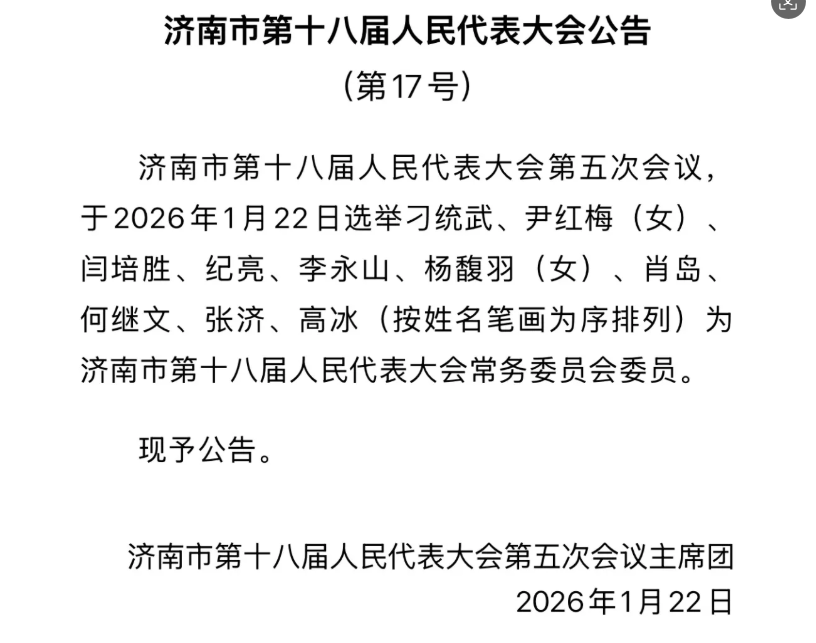 2026年1月22日,济南市第十八届人民代表大会第五次会议胜利闭幕。会上,山东省环境保护产业协会副会长、山东北成环境工程有限公司董事长肖岛同志凭借深厚的政治素养、卓越的履职能力与突出的社会贡献,赢得全体代表一致认可,全票当选为济南市第十八届人民代表大会常务委员会委员,为泉城民主法治建设与生态环保事业发展注入新动能。