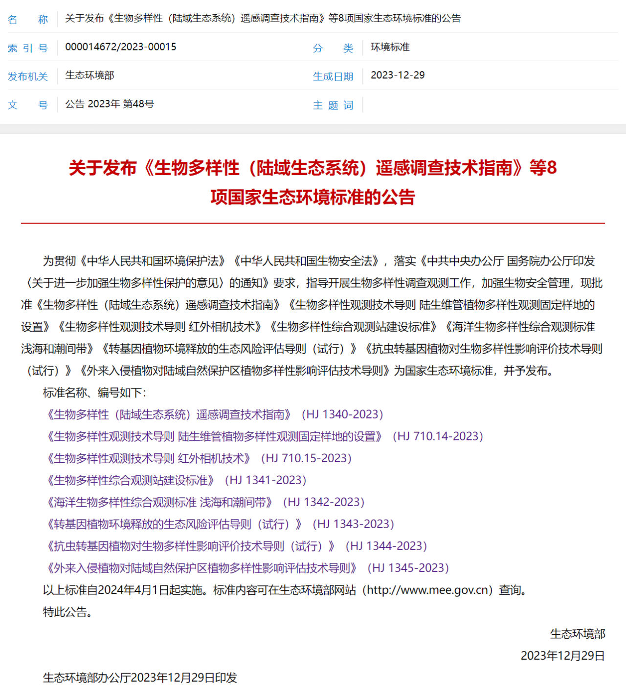 4月1日起实施!最新发布!10项国家生态环境标准