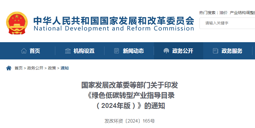 【聚焦】国家发展改革委等部门关于印发《绿色低碳转型产业指导目录(2024年版)》的通知
